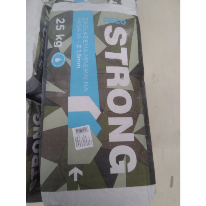 DECO STRONG mineralna fasada zaglađena 1,5mm 25kg za dekorativnu obradu unutrašnjih i fasadnih zidova. Bez kondenza na unutrašnjim zidovima.Jednostavna i brza ugradnja.