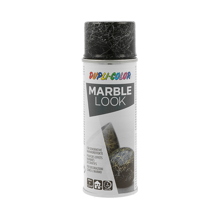 DUPLI-COLOR sprej Marble efekt crni jedan je od neizostavanih pomoćnika, iz naše ponude, dekoraterima, cvjećarima i svima onima koji sa malim efektima, žele da učine promjene i ukrase svoj prostor. Pakovanje pokriva do 2 m2.