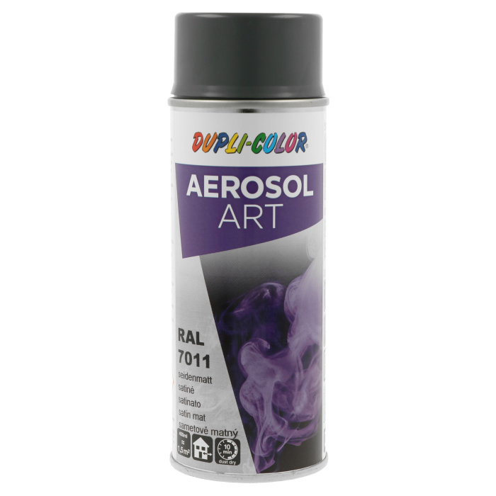 DUPLI-COLOR sprej Aerosol Art RAL 7011 je akrilna boja u spreju, dugotrajne postojanosti i velike otpornosti na ogrebotine. Može se koristiti na materijalima kao što su drvo, metal, papir, staklo, neka plastika, tekstil, beton, kamen. Primjena u unutrašnjim i vanjskim uslovima.