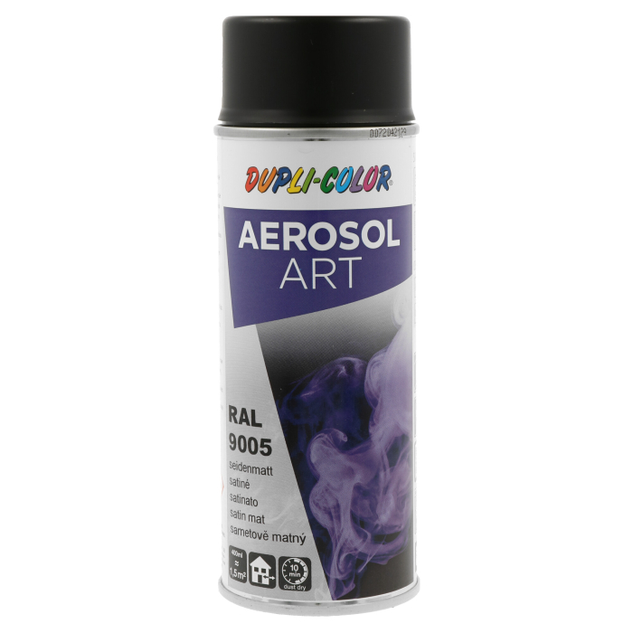 DUPLI-COLOR sprej Aerosol Art RAL 9005 je akrilna boja u spreju, dugotrajne postojanosti i velike otpornosti na ogrebotine. Može se koristiti na materijalima kao što su drvo, metal, papir, staklo, neka plastika, tekstil, beton, kamen. Primjena u unutrašnjim i vanjskim uslovima.