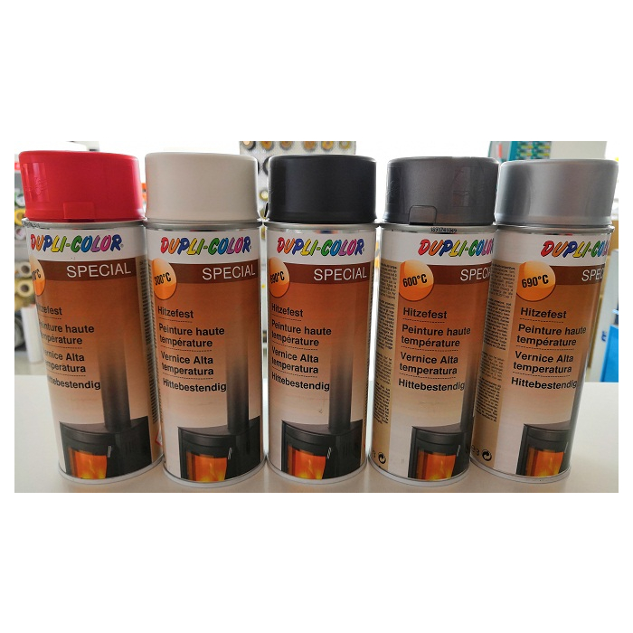 DUPLI-COLOR sprej temperaturni crveni 300C 400ml posebna boja u spreju za bojanje predmeta koji su izloženi visokoj temperaturi. Savršen je za bojanje ispušnih cijevi na motociklima i automobilima, ali i za štednjake, kućišta roštilja. Može se koristiti na metalu, čistom željezu, aluminiju.