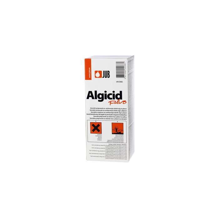 JUB algicid 0,5l je bezbojna otopina biocidnog sastava, koje duboko prodire u zidnu podlogu i učinkovito djeluju na široki spektar zidnih algi i plijesni. Upotrebljavamo ga na svim vrstama fasadnih i unutarnjih zidnih površina, te u stambenim, poslovnim i industrijskim objektima.