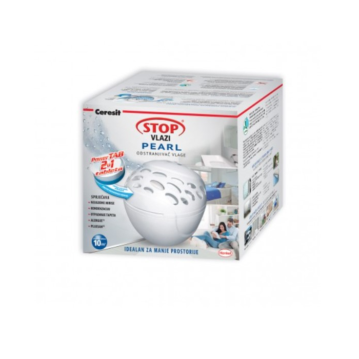 CERESIT odstranjivač vlage Pearl pomaže u smanjenju vlage u zatvorenim prostorijama i sprječava pojavu kondenzacije, plijesni i neugodnih mirisa. Aktivne granule brzo upijaju vlagu i pretvaraju je u tečnost koja se skuplja u donjem spremniku. Pogodan je za kupatila, podrume, kuhinje, ormare i sve slabo provjetrene prostore. Za prostorije do 10m2Tableta 300g.