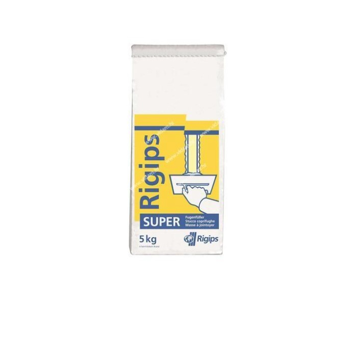 Fug masa Super 5/1 rigips, koristi se za popunjavanje fuga i spojeva gipsanih ploča sa Rigips trakama za armiranje.