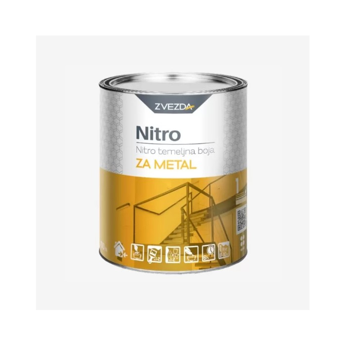 ZVEZDA nitro temeljna boja oks. crvena 5 L je osnovni antikorozivni premaz za zaštitu metalnih površina od gvožđa i čeličnih konstrukcija u enterijeru i eksterijeru. Koristi se u sistemu sa NITRO emajlom, NITRO efekt lakom ili DURLIN Emajlom za drvo i metal. Brzo suši i pruža dugotrajnu antikorozivnu zaštitu. Nanosi se četkom ili špricanjem u 1 – 2 sloja. Razrijeđuje se sa NITRO razrijeđivačem 10 – 20% . Naredni sloj se može nanijeti nakon 6 h, a premaz je potpuno suv nakon 24 h.