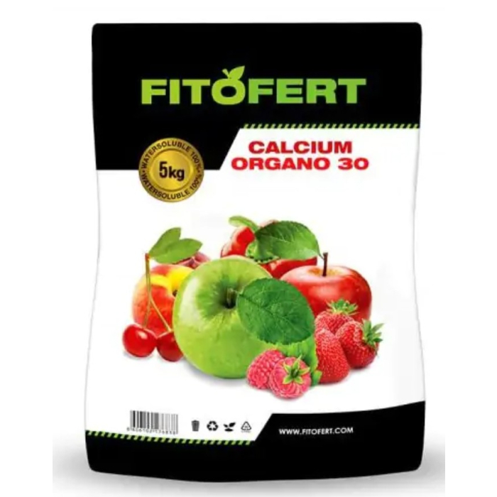 FITOFERT đubrivo Calcium Organo 30 20g je specijalno đubrivo sa visokim sadržajem kalcijuma namijenjeno za jačanje ćelijskih zidova i zdrav razvoj biljaka. Pomaže u sprječavanju nedostatka kalcijuma, poput truleži plodova i deformacija. Brzo se usvaja i lako primjenjuje folijarno ili zalivanjem. Idealno je za povrće, voće i druge kulture u fazi intenzivnog rasta i formiranja plodova.