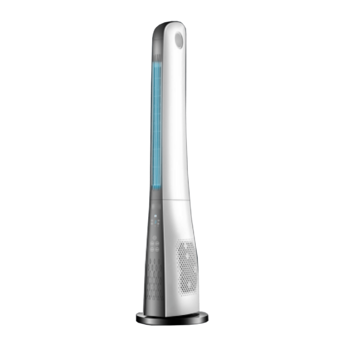 HOME ELECTRONICS ventilator stupni TWFR 110 Home ima snagu od 45 W i visinu od 110 cm, sa tri brzine rada i mogućnošću rotiranja za ravnomjerno strujanje zraka. Posjeduje tajmer za automatsko isključivanje i praktičan daljinski upravljač za jednostavno upravljanje. Elegantan bijeli dizajn uklapa se u svaki prostor, a kompaktne dimenzije omogućavaju lako premještanje i čuvanje.