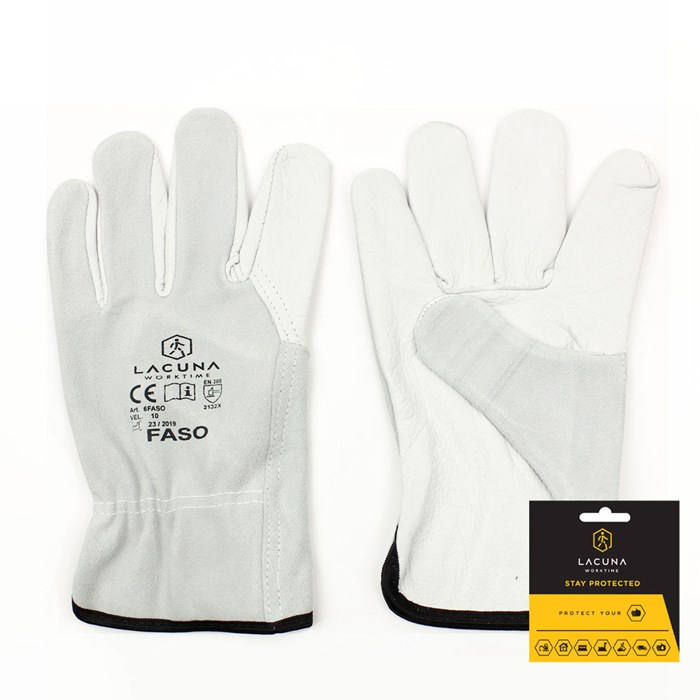 RUKAVICA kožna Faso vel. 10 - kvalitetna kožna radna rukavica sa ergonomskim palcem, dlan i kažiprst od glatke kože, udobne i fleksibilne za precizne radove u suvim uslovima. Materijal kombinacija glatke i špalt kravlje koža. Norme EN 420, EN 388 2132X.