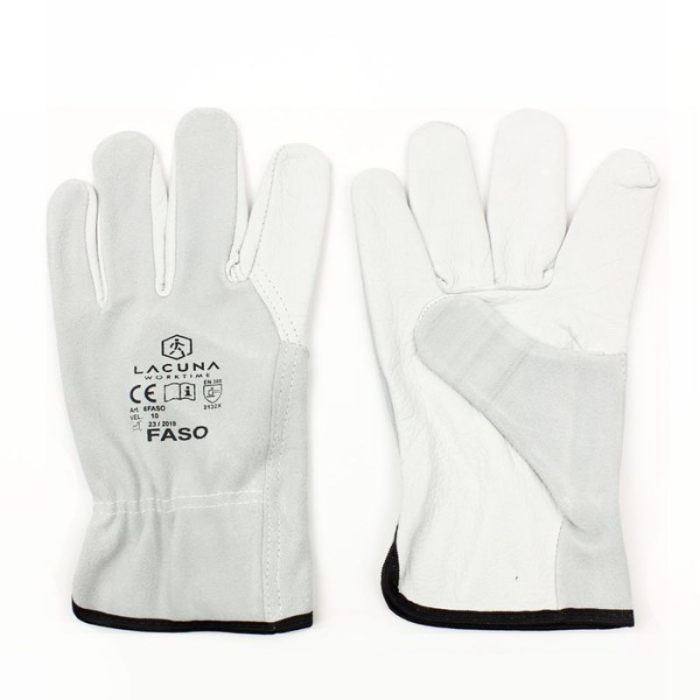 RUKAVICA kožna Faso vel. 11 - kvalitetna kožna radna rukavica sa ergonomskim palcem, dlan i kažiprst od glatke kože, udobne i fleksibilne za precizne radove u suvim uslovima. Materijal kombinacija glatke i špalt kravlje koža. Norme EN 420, EN 388 2132X.