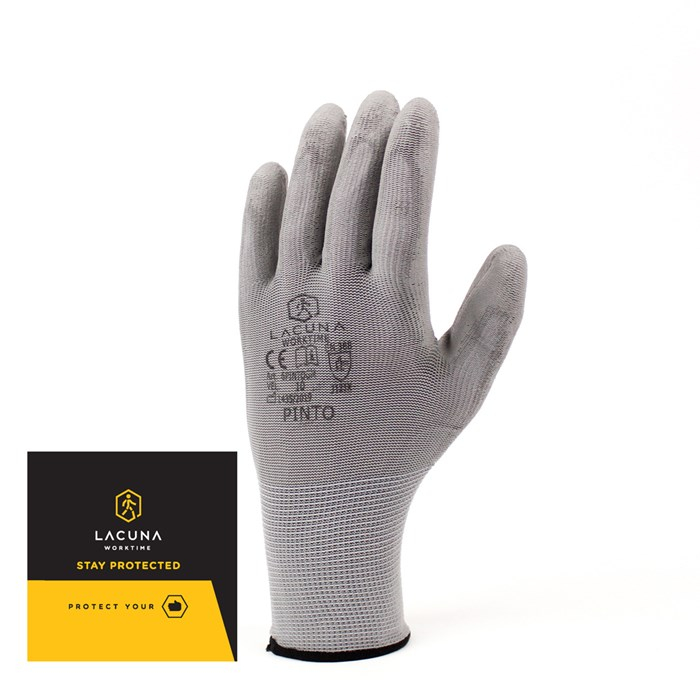 RUKAVICA zaštitna Poliamid siva vel. 10 pinto je elastična rukavica koja je napravljena poliestra i umočena je poliuretan u predjelu dlana te na vrhovima prstiju. Standard: EN420, EN388 ( 3121X ).