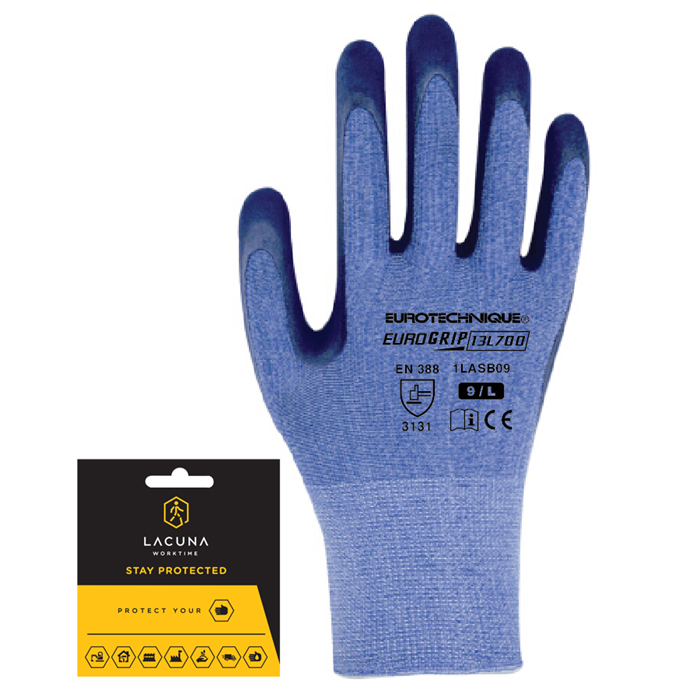 RUKAVICA zaštitna poliester plava vel. 10 - bešavne pletene podloge s elastičnom manžetom, plavi protivklizni premaz, za iznimno precizne radove u vlažnim uslovima. Materijal poliester pletivo.Premaz latex preko dlana. Norma EN 420, EN 388 3131X.