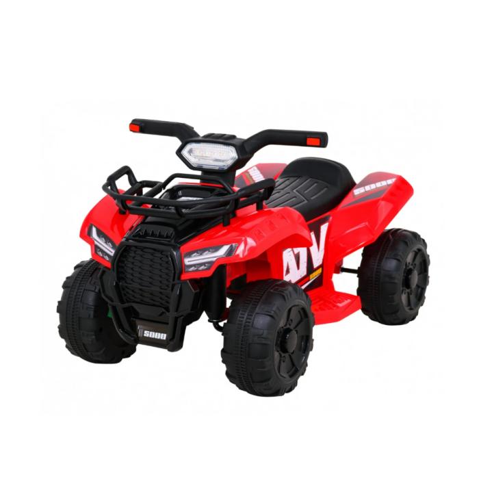 MOTOR na baterije četiri točka crveni - quad jednostavan je za upravljanje, ima radna prednja svjetla i jednostavno dugme na upravljaču, pružajući realističan doživljaj vožnje za mališane. Izdržljivi točkovi sa protivkliznom zaštitom pogodni su za tvrde površine kao što su cement ili asfalt.Baterija: 6V 4.5 AhPunjač: 6V 500 mAMaks. brzina: 2 km/hMaksimalna nosivost: 20 kgPogodno za djecu od 18 do 36 mjeseci