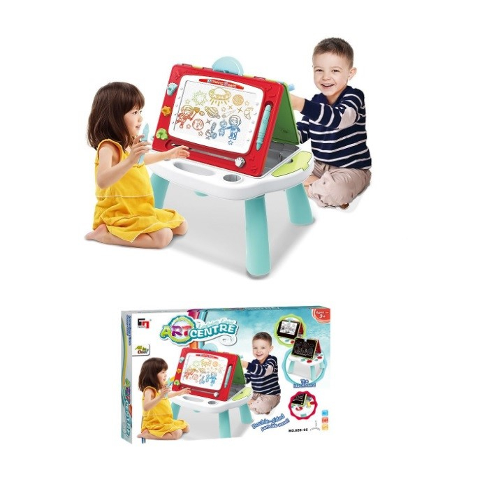 TABLA za crtanje dvostrana je izvrsna za posticanje umjetničke strane vašeg djeteta. Crtanje i bojanje prvi su koraci u razvoju koordinacije ruku i očiju mališana. Stoga će ploča ne samo nadahnuti djetetovu kreativnost i maštu već i izvrsno poslužiti za vježbanje korištenja olovaka, krede i bojica u pripremi za učenje pisanja a sve to uz zabavnu aktivnost i igru.Dimenzije: 87 x 41.5 x 63.5 cm.