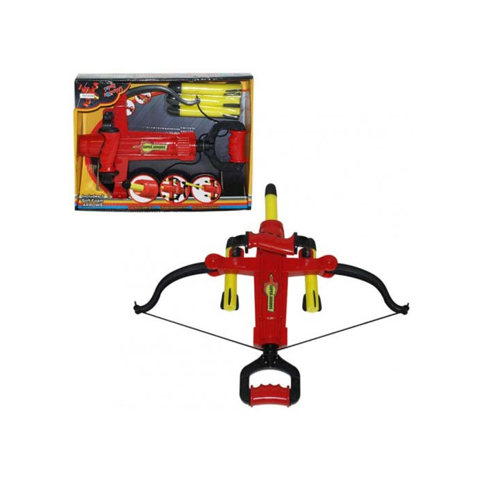 IGRAČKA samostrel spužva sa dimenzijama 32x45x8 cm sa 3 strelice izrađene od spužve 13,5x2cm. Izrađeno od kvalitetne, čvrste plastike. Za djecu uzrasta 3+.