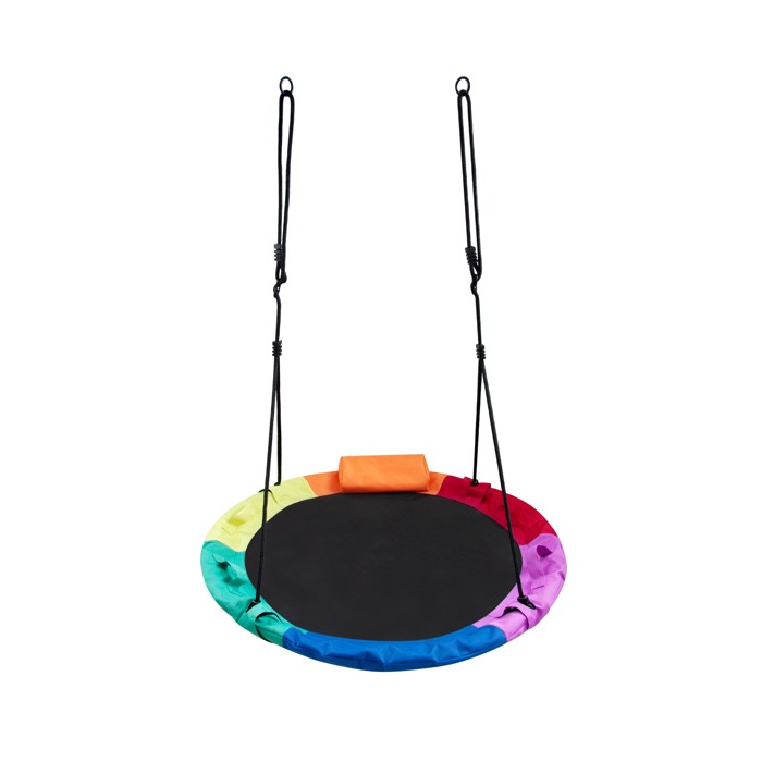 DECOSTRONG ljuljaška gnijezdo sa šarenim jastukom donosi veselu i udobnu atmosferu u vaše dvorište, terasu ili igralište. Njena stabilna i izdržljiva konstrukcija osigurava sigurno ljuljanje, dok mekani višebojni jastuk pruža dodatnu udobnost i vizuelni šarm. Napravljena od materijala otpornih na vremenske uslove, lako se montira i prilagođava različitim visinama, pružajući sate zabave i opuštanja za djecu i odrasle.Prečnik 100cm.