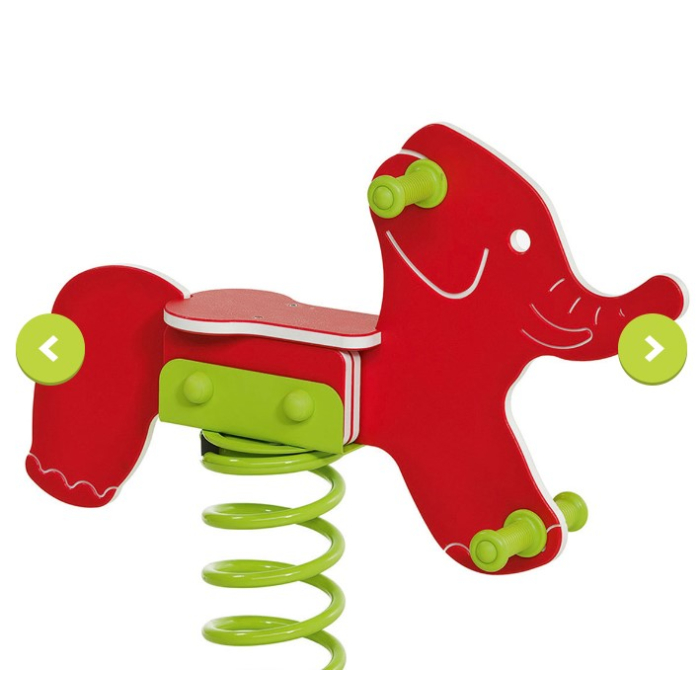 KBT igračka za ljuljanje Slon vrlo popularna opružna ljuljačka izrađena od izdržljive HDPE plastike. Ljuljaška se sastoji od masivne metalne opruge i ljuljačkog dijela sa sjedištem u obliku slona. Sigurno ljuljanje osigurano je stabilnim sjedištem u kompletu sa osloncem za noge i parom ručki, vijci su zaštićeni kapicama. Ljuljaška je namijenjena za korištenje u sjedećem položaju za djecu od 3 do 12 godina