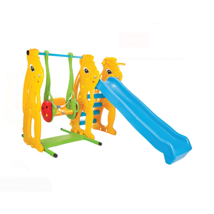 PILSAN tobogan sa ljuljačkom i košem idealan je komplet za zabavu Vaših mališana. Ovaj set je savršeni za igru više od 1 djeteta. Vaši mališani mogu uživati u igralištu igrajući se sa košarkaškim obručem, toboganom, ljuljačkom. Lako se sastavlja/instalira i prikladno za djecu od 18 mjeseci i više.Maksimalna nosivost 35kg.