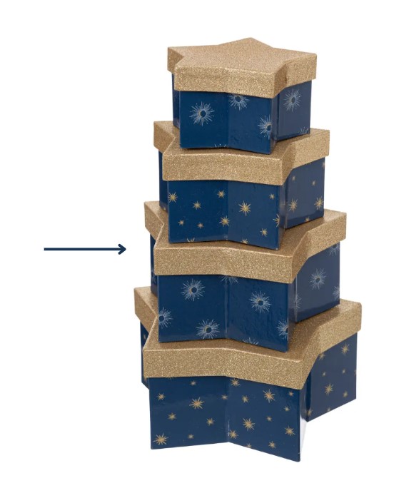 Doživite čaroliju zvjezdane noći uz ovaj set kutija za božićne ukrase sa uzorkom zvjezica! Savršene za svečane prilike, ove kutije za poklone osvajaju maštu svojim motivom zvjezdane noći i svjetlucavim poklopcem. Oblik zvijezde dodaje dašak magije Vašim poklonima i dragocjenim predmetima. Cijena se odnosi na jednu kutiju, ali Vi možete svakako ih kompletirati u setu.