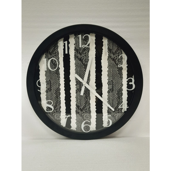 SAT zidni okrugli crno-bijeli 40cm je tip modernog zidnog sata koji će se savršeno uklopiti u dnevnu sobu vaše kuće, ali takođe i u restoranima ili kafićima. Pozadina sata je oslikana crno-bijelim i sivim linijama sa teksturom koja podsjeća na zmijsku kožu. Ram sata je metalni.Materijal: metal, staklo. Prečnik sata: 40cm debljina 5cmNapajanje: 1× 1,5V baterija AA (baterija nije uključena u cijenu sata).