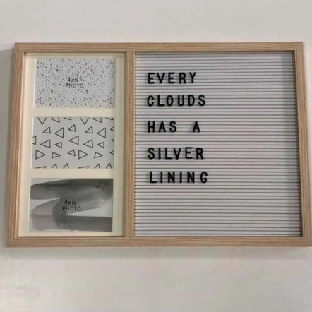 RAM za tri slike i slovima za poruku, odličan ram za ukrašavanje Vašeg doma. Koristeći 145 uključenih karaktera, možete kreirati inspirativan tekst ili ostaviti poruku. Znakovi su zamjenjivi, tako da možete nastaviti da varirate. Ram možete personalizovati tako što ćete svoje tri najljepše fotografije staviti u okvire.