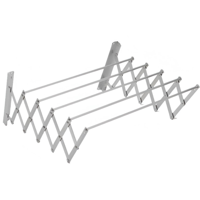 SUŠILNIK 3933 kompaktan i štedljiv na prostoru. Montira se na zid i sklapa se kada nije u upotrebi, što pomaže u očuvanju prostora. Pet pozicija za sušenje veša, dužine 80cm po poziciji.