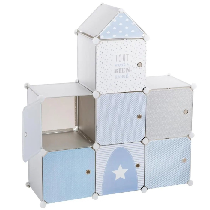 ATMOSPHERA kutija za odlaganje ATMOSPHERA polica za dječake postaće neizostavan dio sobe, a Vama će omogućiti lako upravljanje neredom koje naši mališani prave i pomći Vam da ih uvedete u naviku spremanja svojih stvari. Orgaizator je u sivo-plavoj boji. Dimenzija jednog segmenta- jedne police sa vratima- je 30x30x30cm, a polica se sastoji od 7 ovakvih segmenata.Materija: polipropilen.