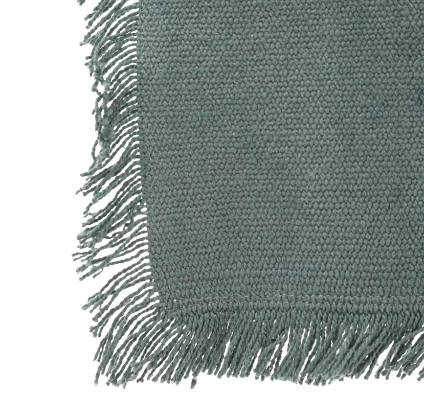 Za vrlo prirodan izgled Vašeg trpezarijskog stola, odlučite se za ovu pamučni nadstolnjak s resama. Izrađen je od pamučnog tkanja sa sirovom, zanatskom obradom. Cijeli obrubljen resama, dostupan je u prirodnoj zelenoj boji.