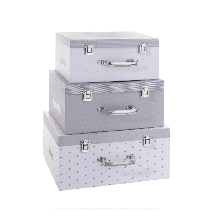 ATMOSPHERA kutije za odlaganje siv 3/1, praktičan set za odlaganje i skladištenje stvari. Nijanse sive boje, uklapaju se u bilo kakav enterijer, može poslužiti i kao dekoracija prostora.Dimenzije:- Najmanja kutija 30 x 22 x 14 cm (d x v x š)- Srednja kutija 33 x 25 x 15,5 cm (d x v x š)- Najveća kutija 36 x 28 x 17 cm (d x v x š)Materijal: KartonMaterijal ručke i zatvarača: MetalBoja: Siva
