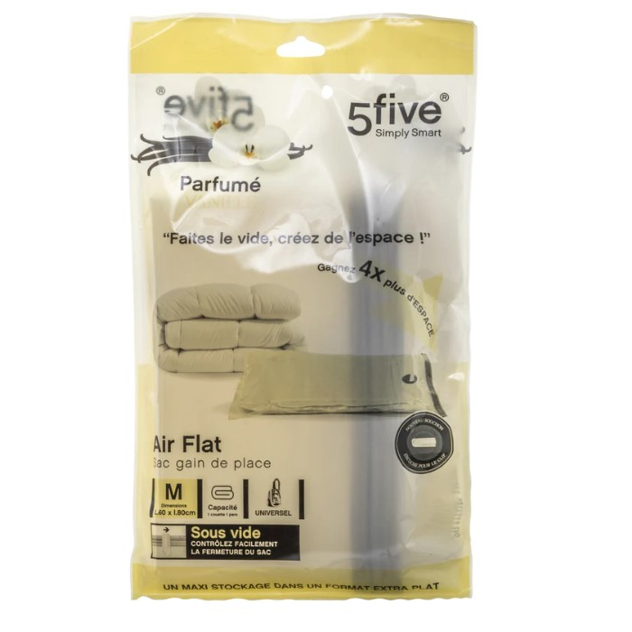 5FIVE vakum vrećica parfemska M posebno dizajnirana za zaštitu odjeće i nudi mogućnost uštede do 75% prostora za odlaganje. Parfem vanilije. Materijal: polipropilen.Dimenzije: 60x80cm.