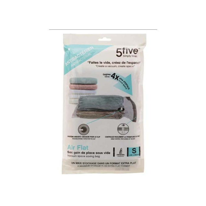 5FIVE vrećica vakuum antibakterijska S jedno su od izvrsnih rješenja za skladištenje koje imaju mnoge prednosti u svakodnevnom životu. Prozirne vreće su idealne za jorgane i jastuke, koji obično zauzimaju puno prostora u ormaru, na tavanu ili ispod kreveta. Kako su vrećice prozirne, dobit ćete lak pregled sadržaja u njima. Isisajte zrak usisavačem i zatvorite ga patentnim zatvaračem. Dimenzije: 50x60cm.