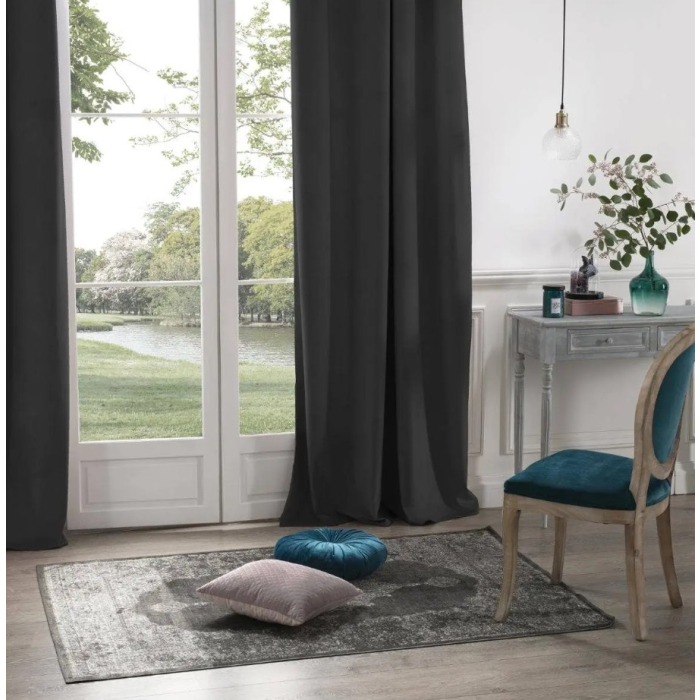 ATMOSPHERA zavjesa ima višenamjenski dodatak Vašem domu, štiti Vas od sunca, održava kuću toplom ili hladnom, stvara privatnost od znatiželjnih pogleda sa prozora. Jednostavan način da osvježite enterijer i dobijete jednu potpuno novu atmosferu. Materijal je poliester i dolazi u tamno sivoj boji, mekan na dodir. Dimenzije: 260x140cm.