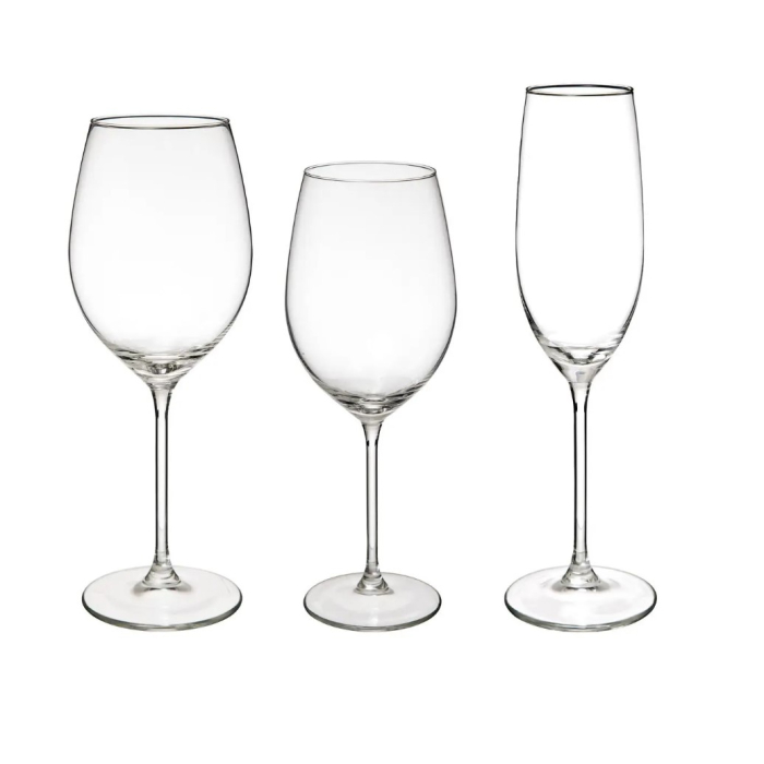 SECRET DE GOURMET čaše za vino, šampanjac Lina 18/1, kompletan set sa 6x čaša za bijelo vino i 6x za crno vino i 6x čaša za šampanjac. Set se može prati u mašini za suđe.Materijal: staklo Dimenzije čaša: 4,5x23cm-kapacitet 210ml 6x22cm-kapacitet 410ml 6,5x23,5-kapacitet 540ml