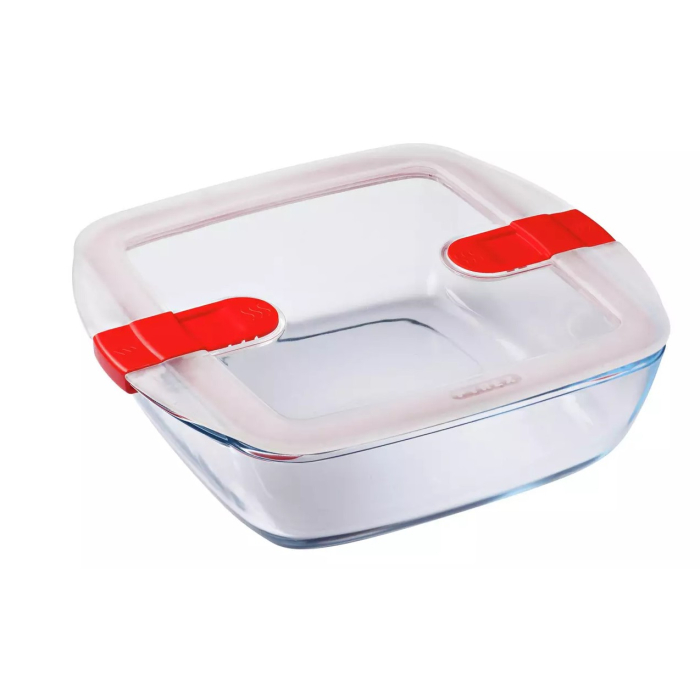 PYREX posuda staklena sa poklopcem idealna je za čuvanje, pripremu i pečenje hrane. Izrađena je od visokokvalitetnog stakla koje je otporno na visoke temperature, čineći je pogodnom za korišćenje u pećnici, mikrovalnoj ili zamrzivaču. Poklopac pruža hermetičko zatvaranje, čuvajući svježinu hrane i sprečavajući prosipanje. Posuda je jednostavna za čišćenje i dugotrajna, pružajući praktičnost i funkcionalnost u svakodnevnoj upotrebi.