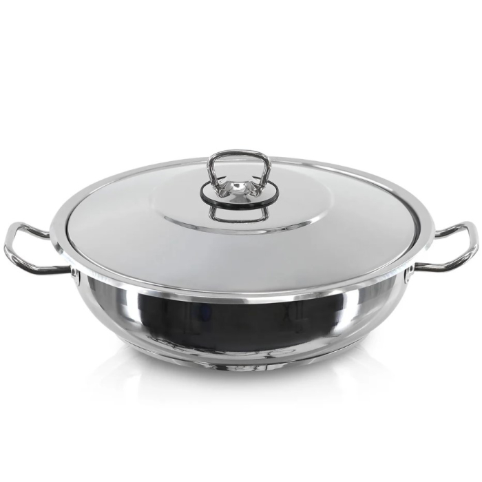 ARIAN šerpa gastro plitka izrađena je od kvalitetnog nerđajućeg čelika koji obezbjeđuje dugotrajnost i otpornost na habanje. Sa zapreminom od 3 litre i prečnikom od 24cm, pogodna je za pripremu raznovrsnih jela u domaćinstvu ili profesionalnoj kuhinji. Plitka forma omogućava ravnomjerno kuvanje i lakši pristup namirnicama tokom pripreme. Jednostavna za održavanje i čišćenje, ova šerpa kombinuje praktičnost, funkcionalnost i moderan izgled, čineći je neizostavnim dijelom posuđa.