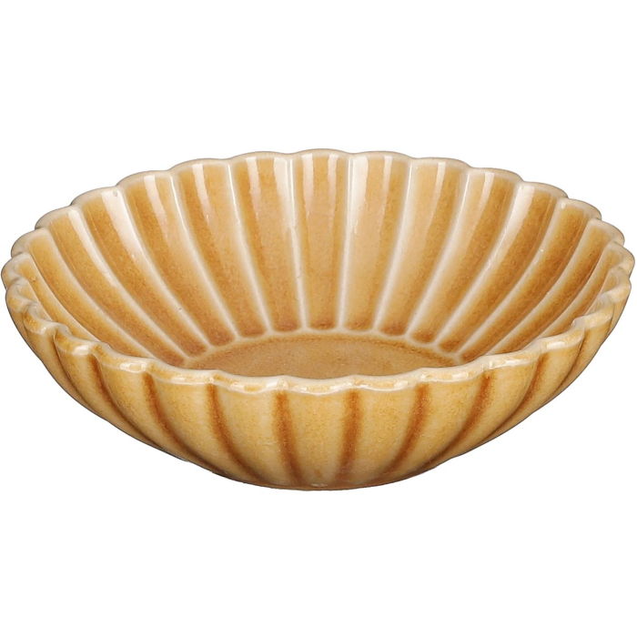 MICA zdjela oker Pesca, prekrasan rebrasti reljef zdjelu čini elegantnim dodatkom Vašem porculanskom ormariću. Posuda je otporna na toplotu do 180 °C i može se jednostavno staviti u mašinu za pranje suđa. Zdjela je pogodna i za mikrovalnu. Zahvaljujući trendovskoj oker žutoj boji, činija se odlično uklapa i uz ostalo posuđe. Prečnik zdjele: 12 cmVisina: 3,5 cm