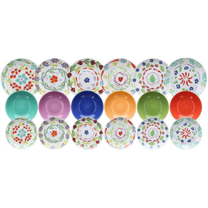 TOGNANA Madison Bio, stolni set od 18 dijelova donosi na stol eksploziju boja i tipičnih proizvoda Italije poput jagoda, čilija i još mnogo toga, kako bi upijao atmosferu punu izvornosti i veselja.Set Bio 18 elemenata uključuje:6 tanjira - prečnik: 26 cm6 tanjira za supu - prečnik: 20 cm6 desertnih tanjira - prečnik: 20 cmMaterijal: Porculan + pečena keramika