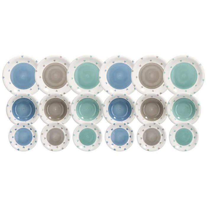 TANJIRI set Tognana Louise Lovely 18/1 za 6 osoba, porculanski set koji čini 18 komada. Set se sastoji od 6x plitki tanjir (fi 27 cm), 6x duboki tanjir (fi 21 cm), 6x desertni tanjir (fi 21 cm). Pogodan za pranje u mašini za suđe i za mikrotalasnu pećnicu.