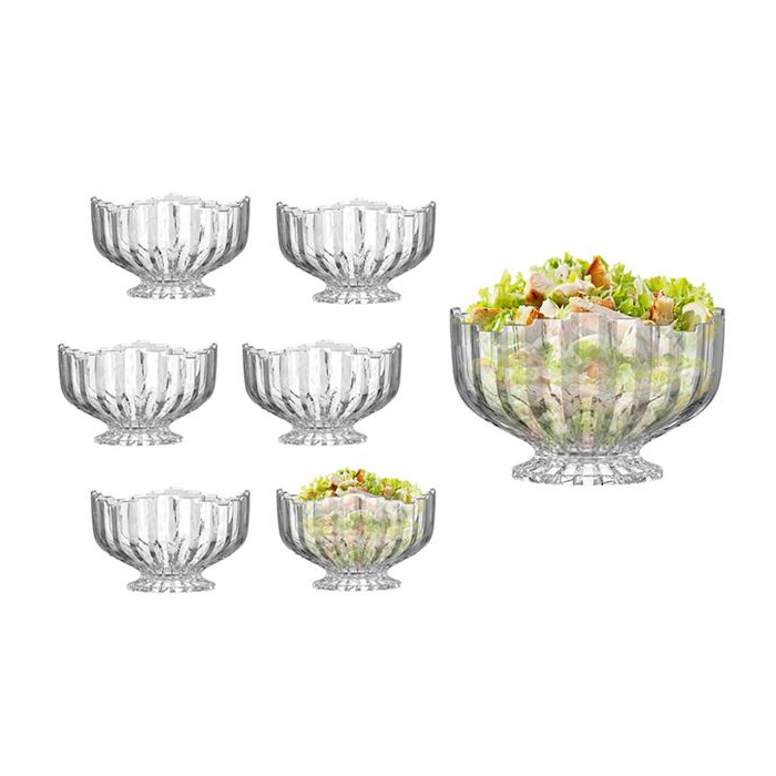PASABAHCE Set zdjela za salatu 198x110 mm 1.7 L se sastoji od 6 malih zdjela 12cm i 1 velike 20cm.