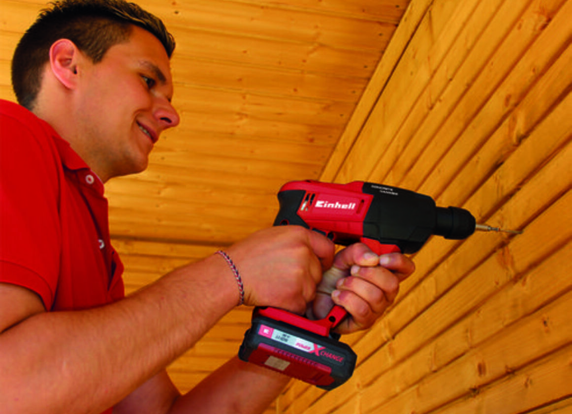 EINHELL aku čekić bušilica PXC TE-HD 18 Li sa praktičnom funkcijom brzog zaustavljanja i LED svijetlom za optimalnu osvijetljenost radne površine. SDS prihvat, 3 funkcije: uvrtanje, bušenje, udarno bušenje. Snaga udarca 1,2 J. Isporuka bez baterije i punjača.