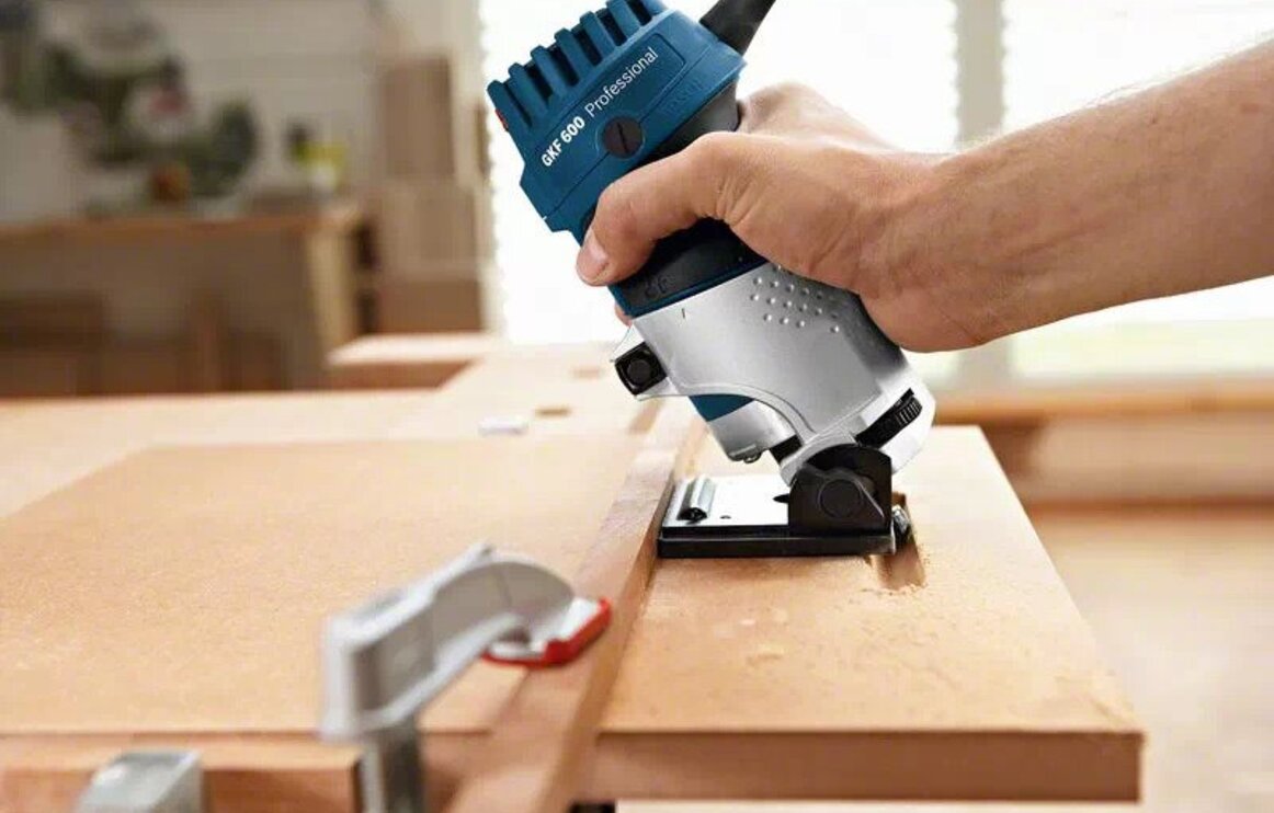 BOSCH glodalica za rubove GKF 600 - vrlo kompaktna konstrukcija i ergonomski oblikovana ručka omogućuju vođenje jednom rukom naročito pri obradi rubova. Skala utisnuta u aluminiju za točno podešavanje željene dubine glodanja.