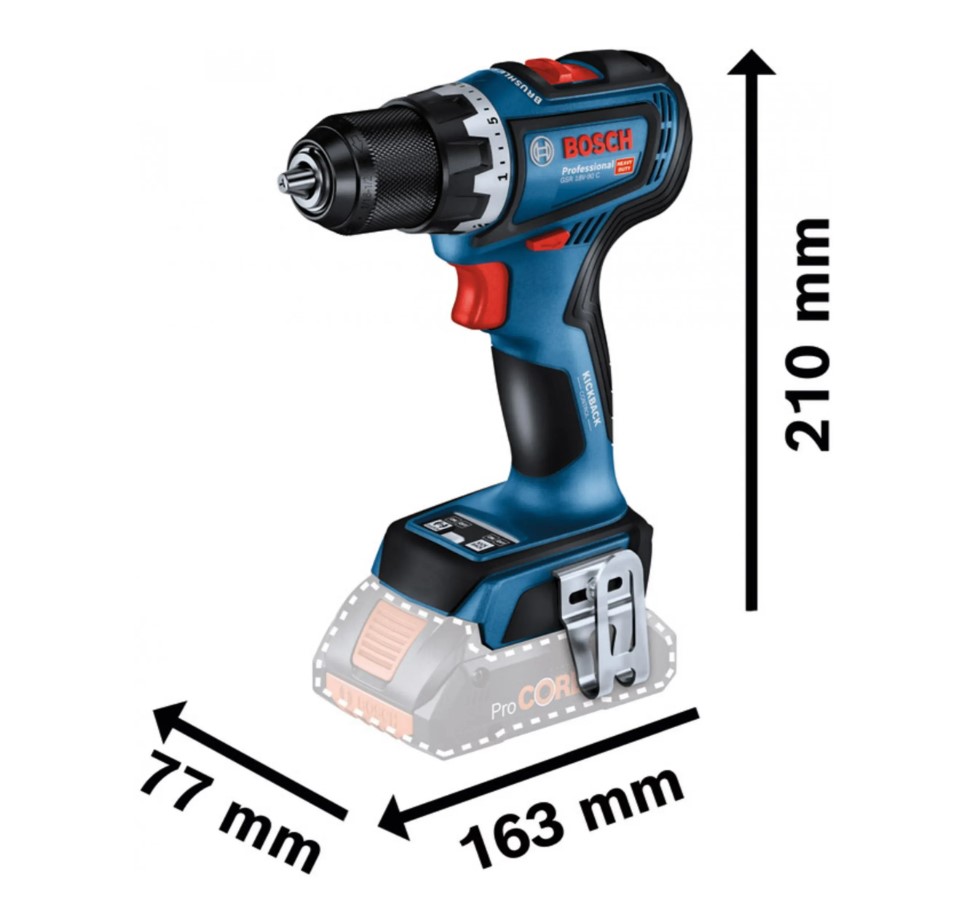 BOSCH bušilica izvijač GSR18V-90C aku solo visokih performansi sa kompaktnom dužinom glave i savršenom kontrolom alata. Snažan motor bez četkica isporučuje veliku snagu sa 64 Nm i 2.100min-1 za maksimalnu efikasnost na radnom mjestu. Metalna stezna glava od 13mm osigurava veću izdržljivost i odličan prijenos obrtnog momenta za bilo koji projekt. Podesive funkcije KickBack Control i Precision Clutch garantuju savršenu kontrolu i visok nivo zaštite korisnika i alata.
