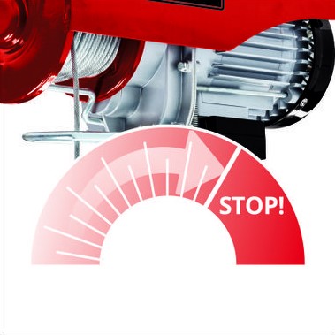 TC-EH 600 takođe ima automatsku kočnicu koja osigurava teret u svakom položaju. Vitlo je opremljeno graničnikom s funkcijom automatskog zaustavljanja podizanja, koji ujedno i štiti električnu dizalicu od pregrijavanja.