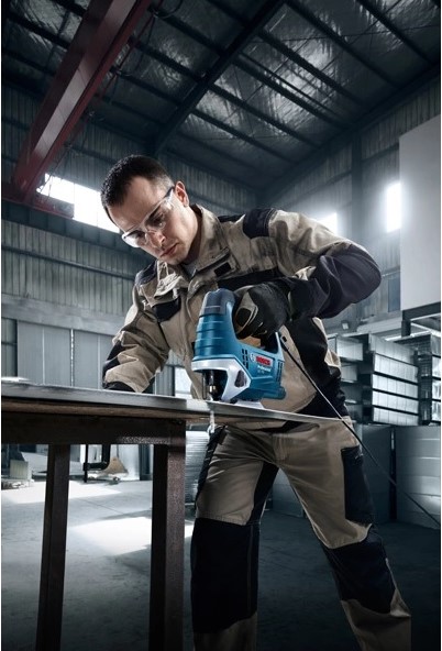 Ova električna ubodna pila lako reže drvo, metal i druge materijale. Jednako lako kao ravne linije može rezati zakrivljene i okrugle linije. Savršena je za precizno rezanje oblika za instalatere ormarića, stolare, poljoprivrednike, krovopokrivače te vlasnike imanja i fabrika.