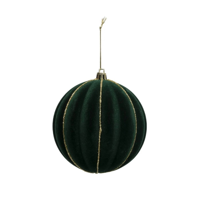 ATMOSPHERA baršunasta kugla donosi luksuzan i elegantan izgled vašoj novogodišnjoj jelki. Baršunasta površina u bogatoj zelenoj boji ukrašena je zlatnim detaljima koji stvaraju savršen spoj topline i glamura. Idealna je za kombinovanje s drugim klasičnim ili modernim ukrasima. Zahvaljujući svojoj veličini i sjajnom finišu, ova kugla postaje upečatljiv detalj koji unosi sofisticiranost i praznični duh u svaku dekoraciju.Materijal: PVC