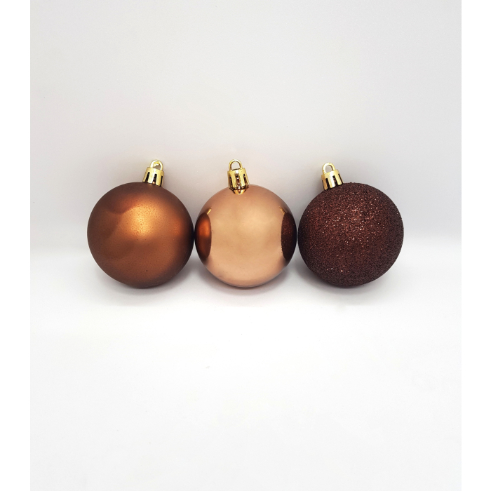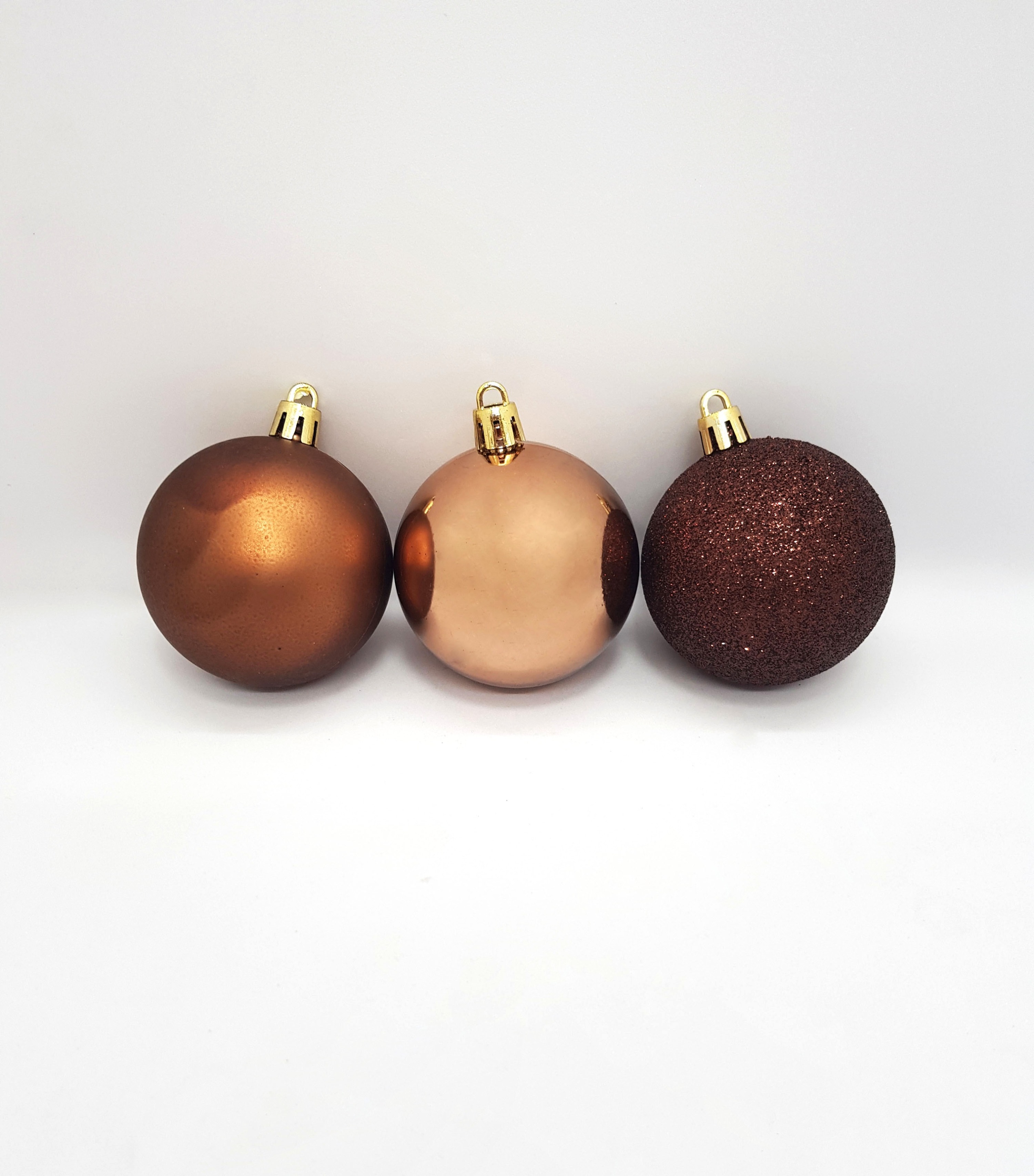 KUGLICE novogodišnje 10 kom smeđe 6 cm, različitog sjaja, ukras je elegantan, savršeno kombinujući tradiciju i modernost. Njihov klasični oblik skladno će se uklopiti u svaku kompoziciju, dodajući note nostalgije i topline u svaki kutak Vašeg doma.Dimenzije: 6 x 6 x 6 cm (d x š x v)Materijal: PVCBoja: Smeđa/3 vrste sjajaU setu dolazi 10 kuglica