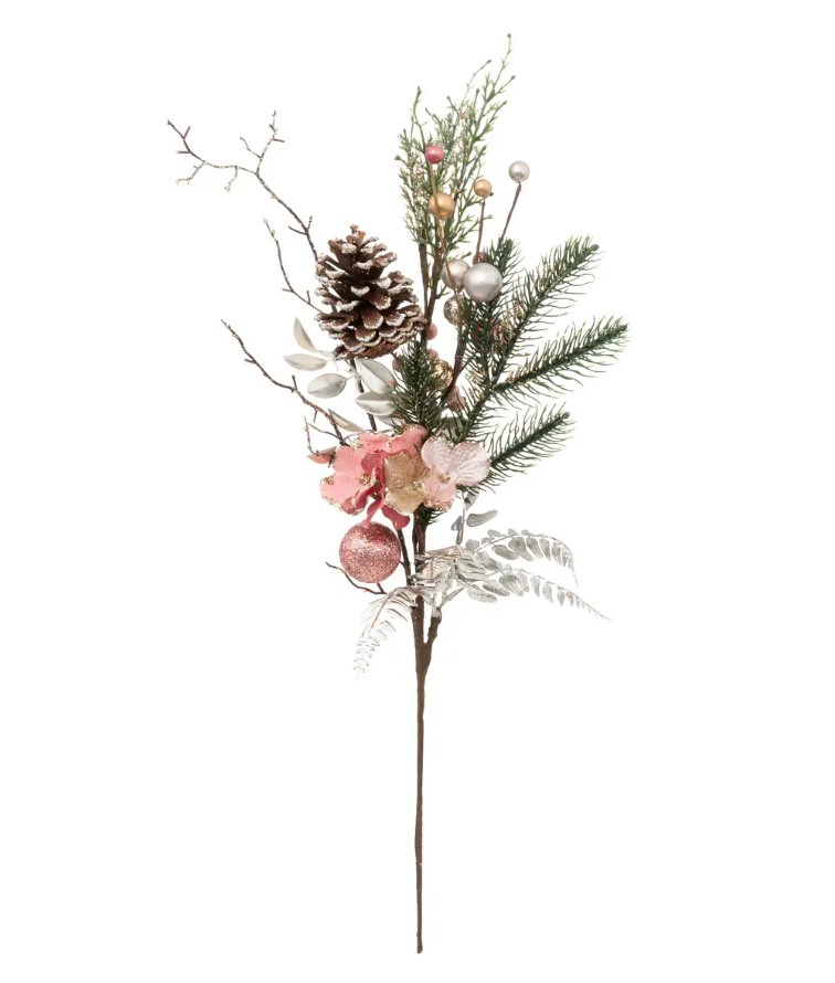 FÉÉRIC LIGHTS & CHRISTMAS grana umjetna sa šišarkom, cvjećem i kuglicom 64cm