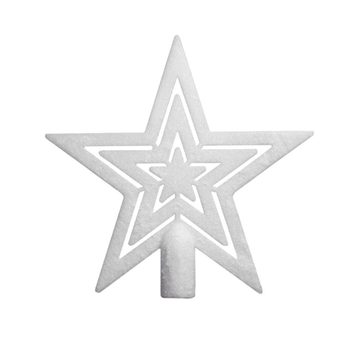 VRH za jelku zvijezda 18cm bijela, ukrasite Vašu božićnu jelku s ovim filigranskim vrhom za bor koji će svojim elegantnim dizajnom u bijeloj boji i snježno pahuljastom strukturom biti savršen ukras i dobro se složiti s drugim ukrasima na jelci.Karakteristike:Veličine: 18 cmBoje: BijelaMaterijal: Umjetni sa sitnim pahuljastim posipom