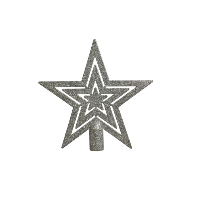 VRH za jelku zvijezda srebrna je veoma efektan ukras za Vašu jelku. Ukrasite jelku sa ovim elegantnim dizajnom i donesite duh novogodišnjih praznika u Vaš dom. Dimenzije: visina 18cm.