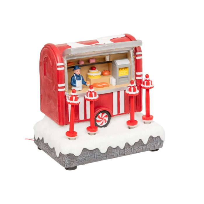 ATMOSPHERA dekoracija štans slatkiša sa 8 LED lampica donosi veselu i bajkovitu novogodišnju atmosferu u vaš dom. Ova šarmantna dekoracija prikazuje štand sa slatkišima obasjan LED svjetlima, uz prateću muziku i pokret koji stvaraju živu prazničnu scenu. Idealna je za postavljanje na sto, komodu ili ispod jelke. Kombinuje boje, svjetlost i zvuk u savršenom skladu, unoseći toplinu, radost i praznični duh u svaki prostor.Dimenzije proizvoda : D. 15 x Š. 10 x V. 14,5 cm