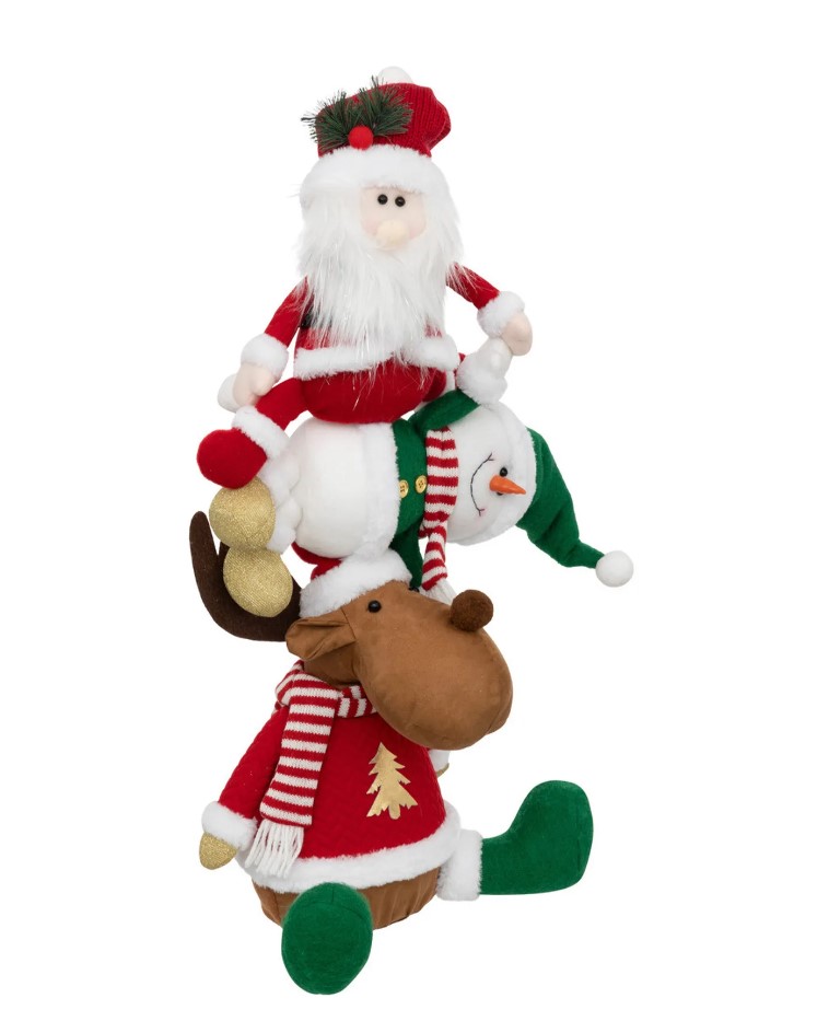 Sama ili s ukusnom košaricom, ova velika plišana piramida koju čine Djed Mraz, snješko i irvas biće najslađi poklon za Vaše najmlađe. Pored toga može da posluži kao dekoracija Vašem enterijeru.